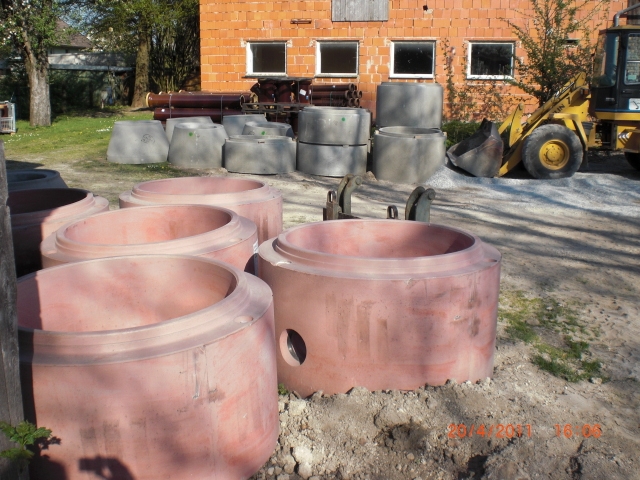 110 Stück Fertigteilschächte mit werkseitig eingebauter GFK/PP Schachtschale inkl. Aufbauten